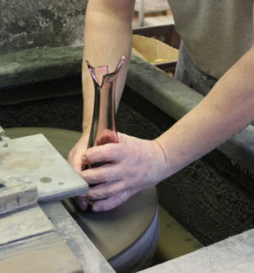 With the help of special tools, internal decors and resulting shapes of the product are formed by glassmakers.