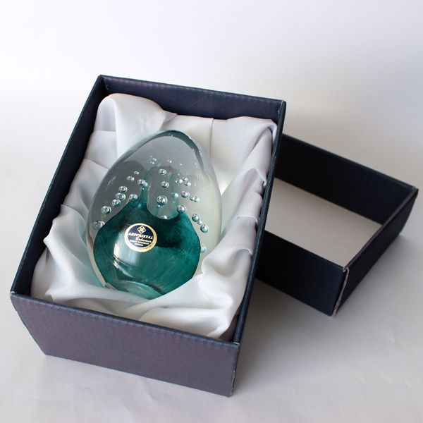 A dark blue cardboard box with satin completes the uniqueness of a glass gift. You can choose from three colour shades of satin - white, ivory and silver. Thanks to the gift box, we will ensure that your gift is presented with the highest value.